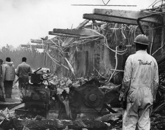 When the fires started, no one was too concerned. Thiokol creates fires by design. Thiokol began in 1929 as America’s first rubber company, a peculiar appendage off of Morton Salt. Providing synthetic polymers for use in jet propulsion, Thiokol was front-and-center for the global arms race that would ensue following World War II. “Thiokol” is a portmanteau of “theío” and “kólla”, respective Greek for “sulfur” and “glue”.